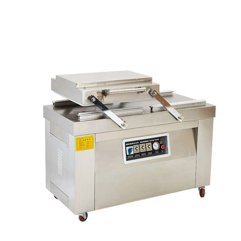 Double chamber vacuum packaging machine is evacuated vacuum bag and then sealed, so that the bag to form a certain degree of vacuum, which can make packaging products to oxygen, preservation, moisture, mildew, rust, pest control, pollution prevention purposes , Effectively extend its shelf life, easy to store and transport.